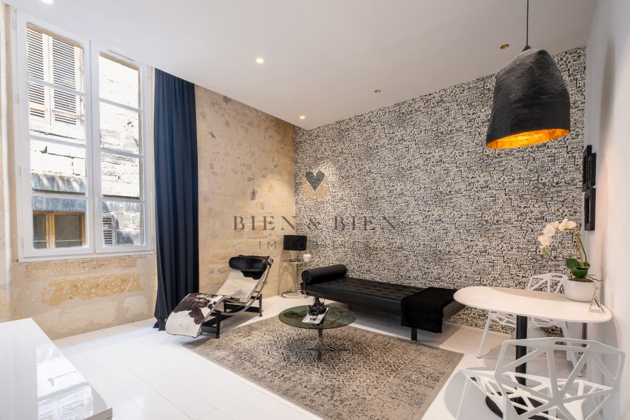 COUP DE COEUR pour ce très bel appartement entièrement meublé et équipé idéalement situé au 2ème étage d’un immeuble en pierre, en plein coeur du centre historique de Bordeaux, quartier Saint Pierre, à côté de tout et en bénéficiant d’un calme absolu en retrait de rue!